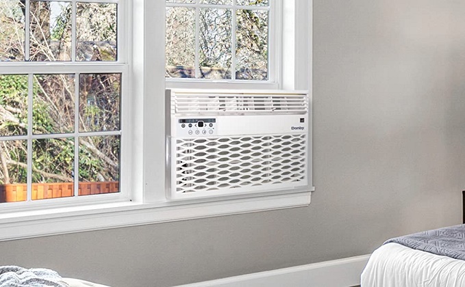 Danby Window Air Conditioner with Digital Controls, Remote Control, 3 Cooling and 2 Fan Settings, 4-Way Air Direction and Programmable 24-Hour Timer - 10,000 BTU - White (Model DAC100EB6WDB)