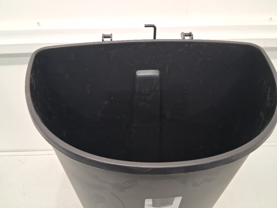 trash can has no lid, and due to no outer packaging, it has dirt markings on it