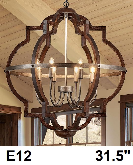 tacdandm 8-Light Farmhouse Chandelier for Dining Room - E12 bulb 31.5" - rustic vintage brown