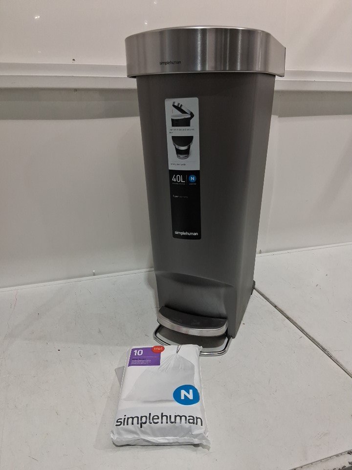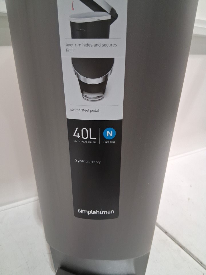 SIMPLEHUMAN SLIM PLASTIC STEP TRASH CAN with liner rim - 40L - Grey (model: CW1391)