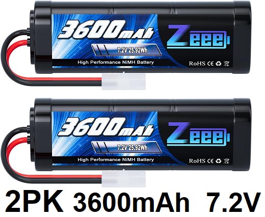 zeee NiMH Battery with Tamiya Plug High Power for RC car - 7.2V, 3600mAh - black