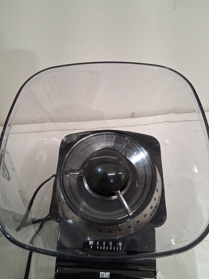 note there are some coffee grounds in the grinder from previous use. Tested for power - no indicator light