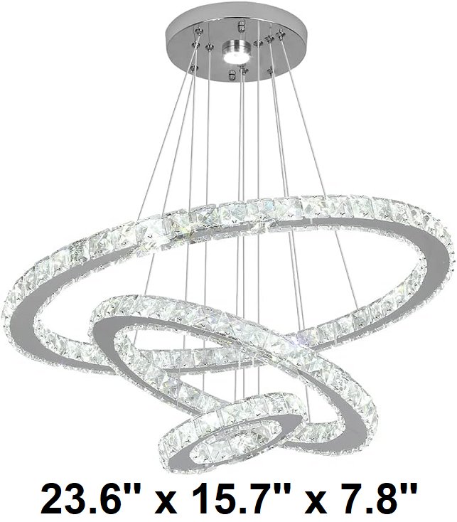 Kaniker 3 Rings Modern Crystal Chandelier - 23.6" x 15.7" x 7.8" - crystal clear
