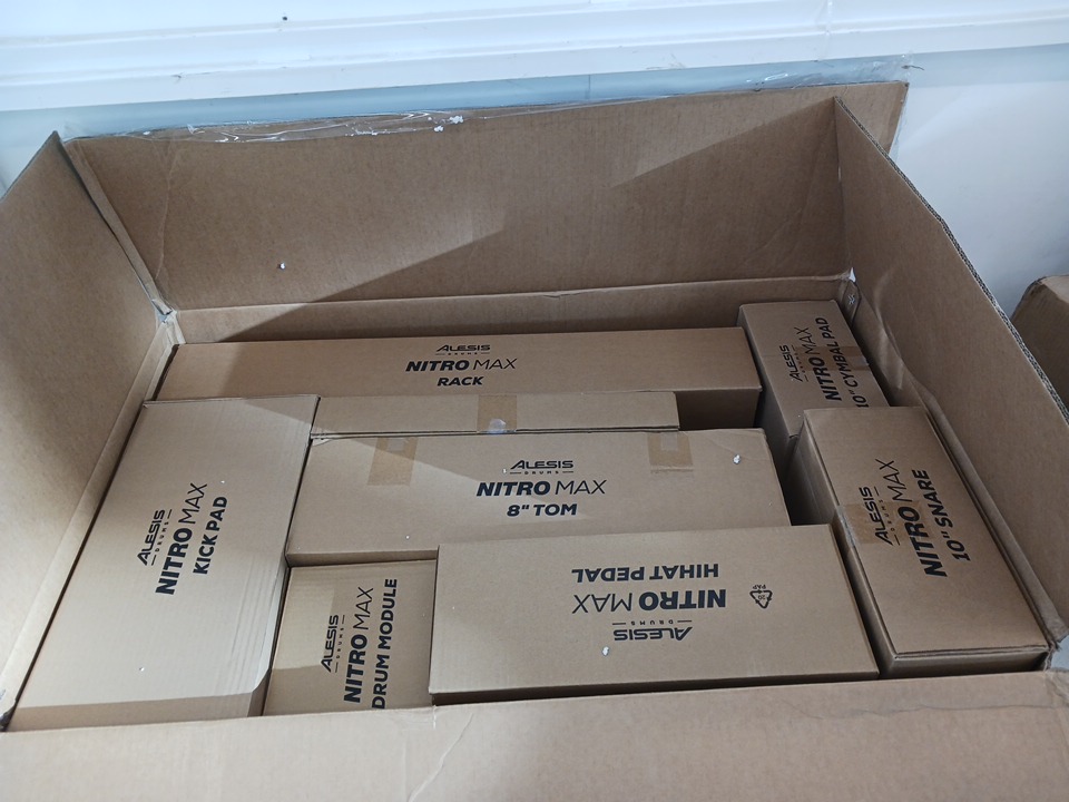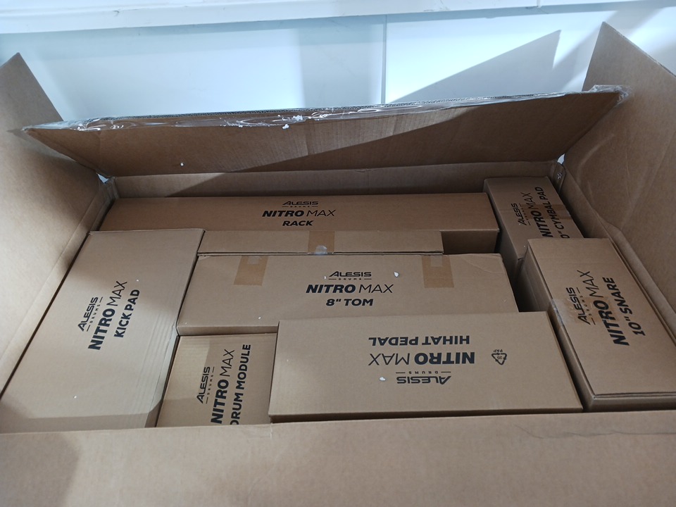 To the best of our ability, we have confirmed that all primary components and accessories appear to be present, and most items remain sealed in their original manufacturer packaging. The overall set appears to be unused and in excellent physical condition. However, the power adapter is missing, which prevented us from fully testing the drum kit’s electronic functionality, including module power-up and sound output. All mesh pads, pedals, rack components, and cables are intact and visually undamaged. The set should function properly once a compatible replacement power adapter is sourced.