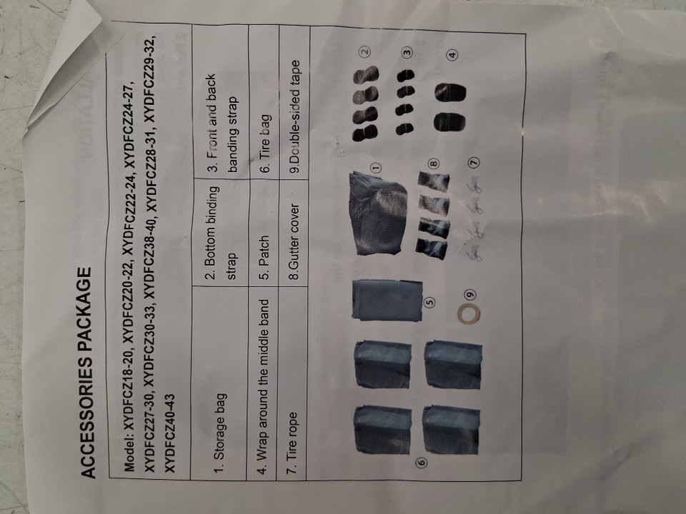 Please read full notes: - The item is missing some attachments: (1) Sponge Drain Channel Cover & Some of the fastening straps - There is debris on the item consistent with previous use (Leaves/Dirt/Grass) - Upon inspection, there were no major damages found. However, there are small holes/rips on the item