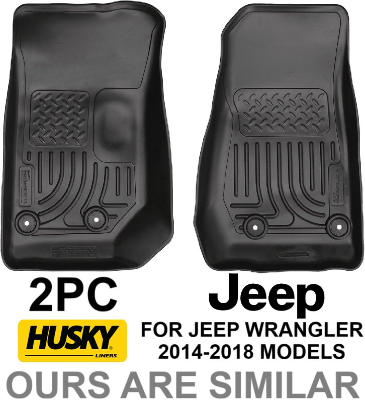 2PC Husky Liners Weatherbeater Floor Mats - Front - For Jeep Wrangler 2014-2018 Models - Black (Model: 18041)