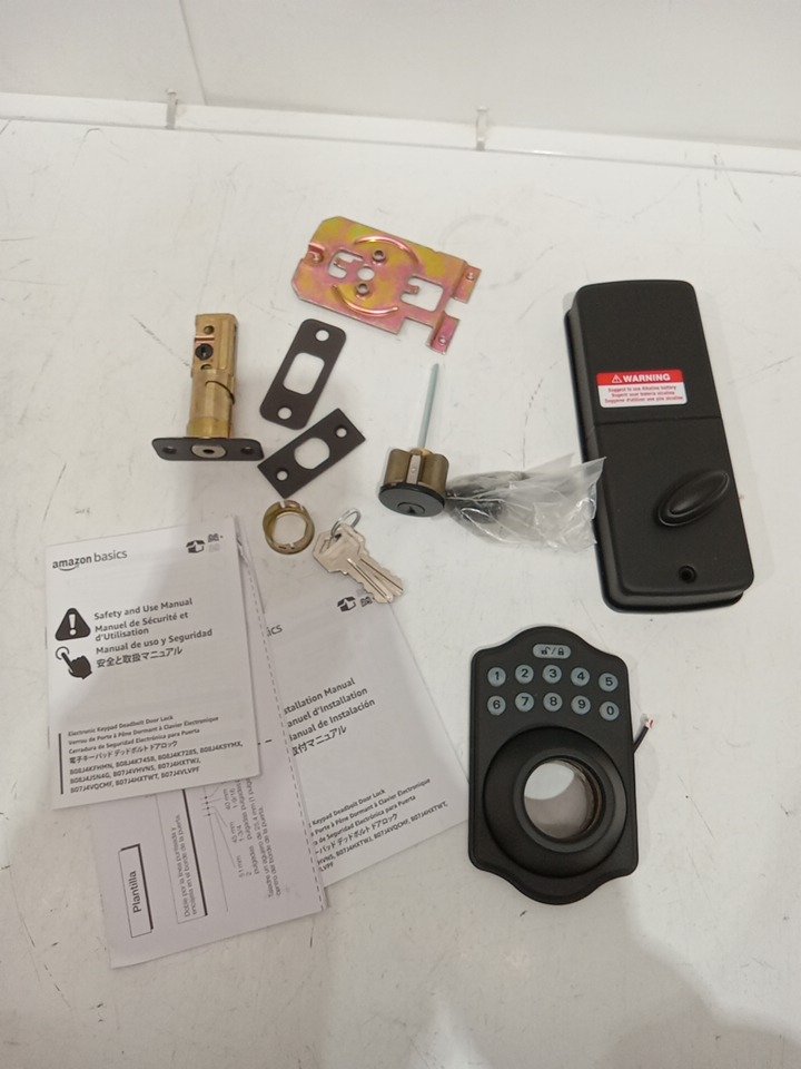AMAZONBASICS TRADITIONAL ELECTRONIC KEYPAD DEADBOLT KEYED ENTRY DOOR LOCK - MATTE BLACK