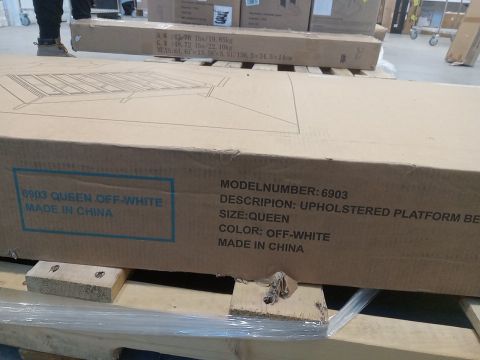 Molblly Upholstered PLATFORM bed with headboard - queen - Off-white (model: 6903)