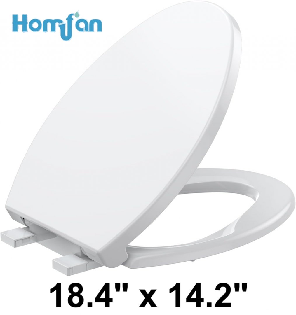 Homfan Elongated Toilet Seat With Soft Close - 18.4" x 14.2" - White (Model: PHO_161CY13U)