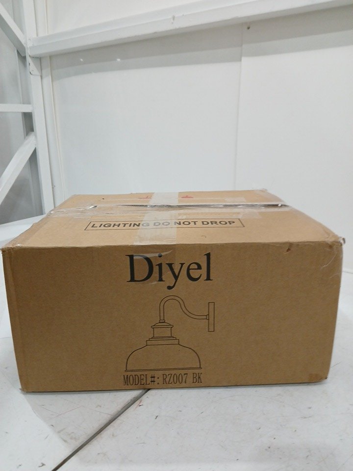 diyel dusk to dawn outdoor wall mounted gooseneck industrial barn lantern light fixture - 12" round - e26 base - 100w - black (model: ddrz007)