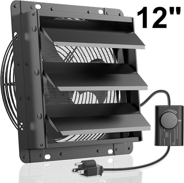 hg power upgraded Shutter Exhaust Fan with Speed Controller - 12" - 764 cfm - 1400RPM - black