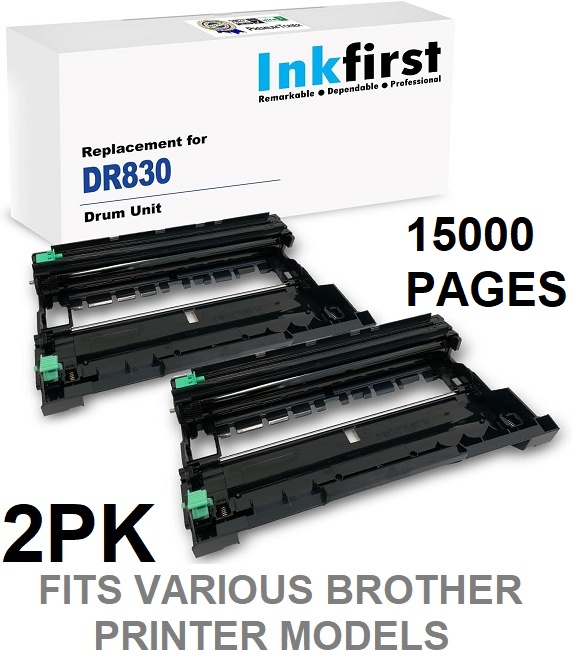 2pk inkfirst dr830 drum unit replacement - compatible with various brother printer models - 15000 page yield at 5% coverage - black/green (model: if-dr830-2pack(a))