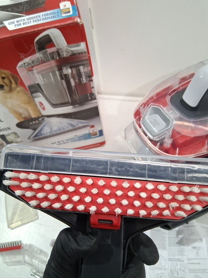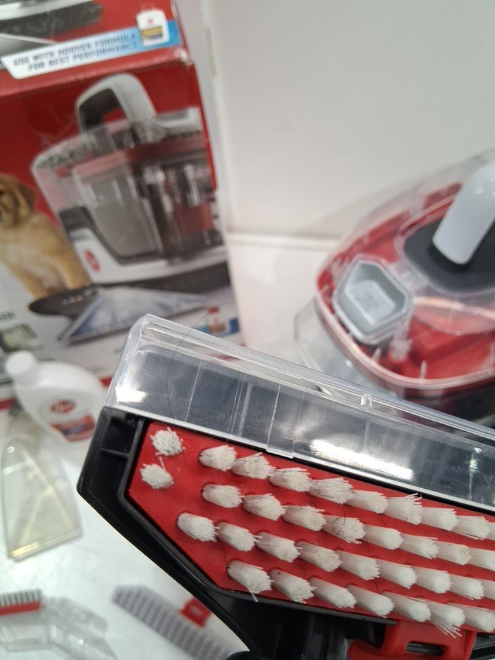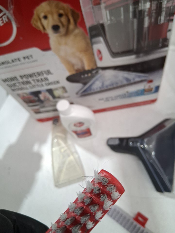 note there is water marks, light pet hair and some dirt all throughout the unit and attachments from previous use, but it still appears to be in really good condition as well there is about 40% of the cleaning solution left in the bottle. Tested for power - no indicator light