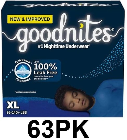 63PK Huggies GOODNIGHTS ABSORBING BED-WETTING UNDERWEAR for boys - extra large