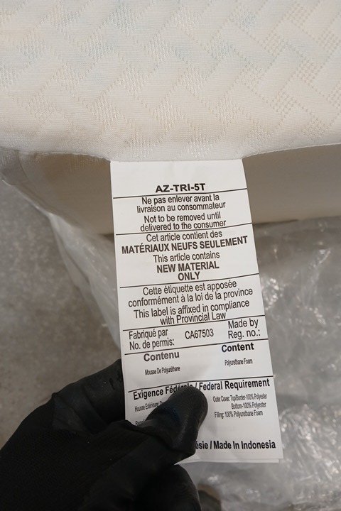 ZINUS GEL MEMORY FOAM 5" TRI-FOLD COMFORT PORTABLE FOLDING MATTRESS OR FLOOR MAT, TWIN - WHITE(MODEL: AZ-TRI-5T)