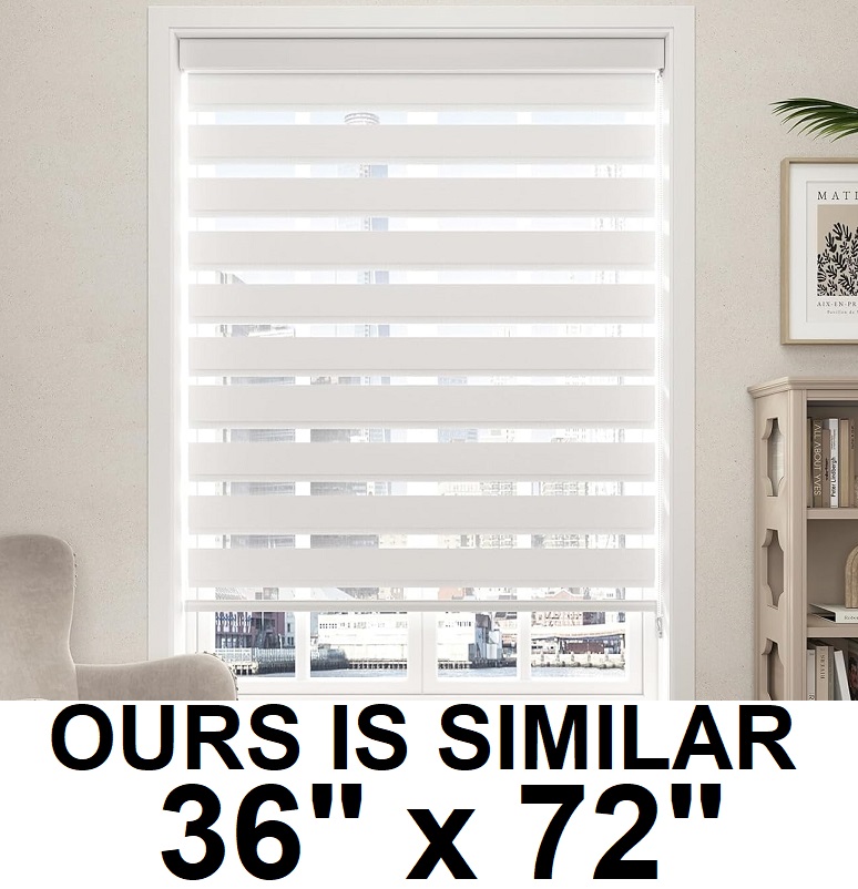 ZEBRA ROLLER SHADE LIGHT FILTERING BLINDS - 36" x 72" - WHITE FINISH