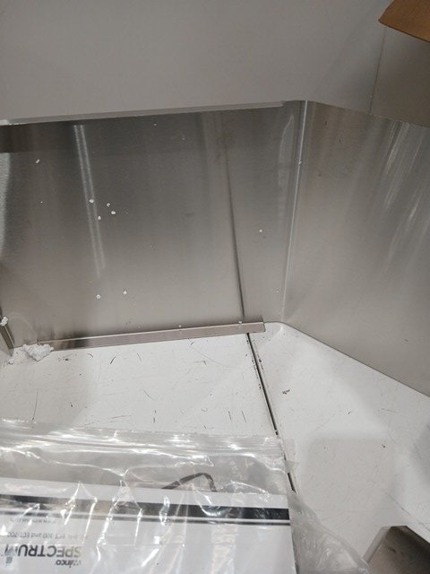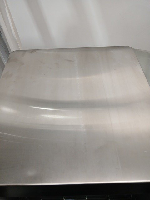 The top of the machine has some distress to it, and one of the knobs are cracked but can be replaced. Tested for power.