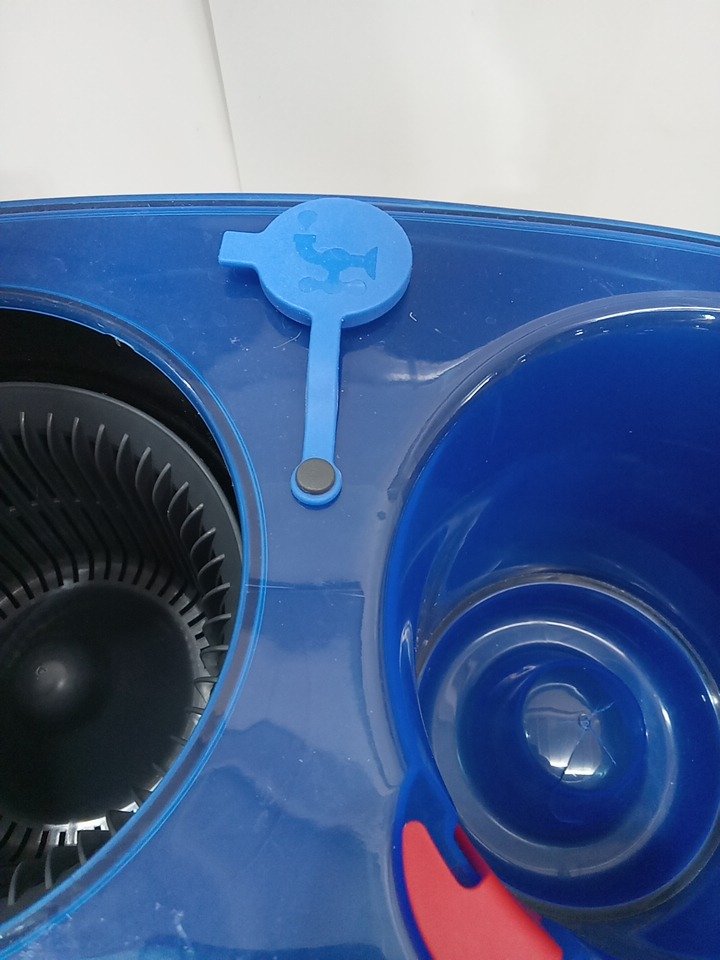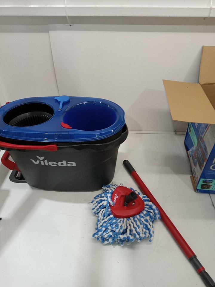 Smells like chemicals and mop head is a little dirty. Can likely be cleaned.