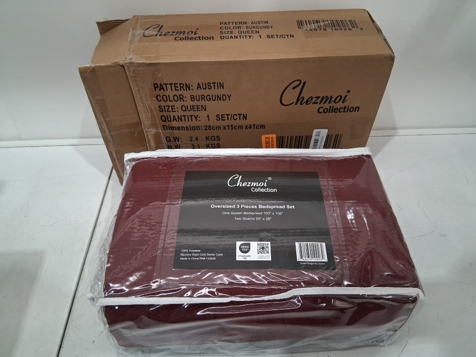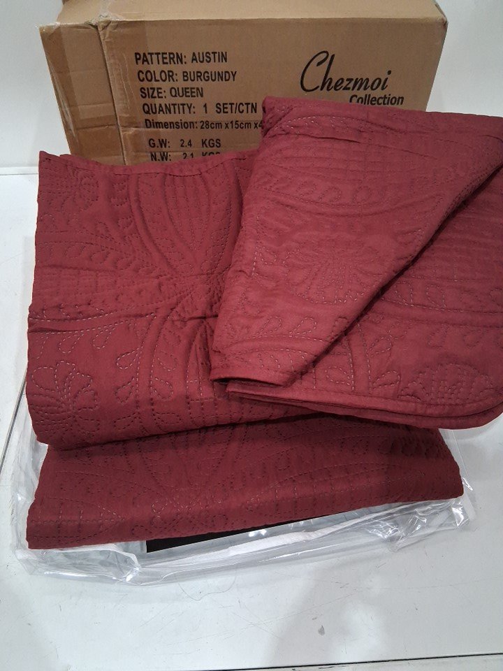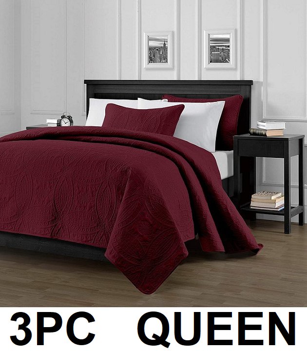 3PC CHEZMOI COLLECTION AUSTIN COVERLET SET - 2 SHAMS AND QUILT - QUEEN - BURGUNDY