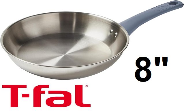 T-fal Essentials Stainless Steel oven safe Frying Pan - 8" - Silver/ Blue