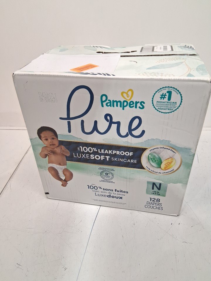 128pk pampers pure protection hypoallergenic unscented 100% leakproof disposable diapers - newborn