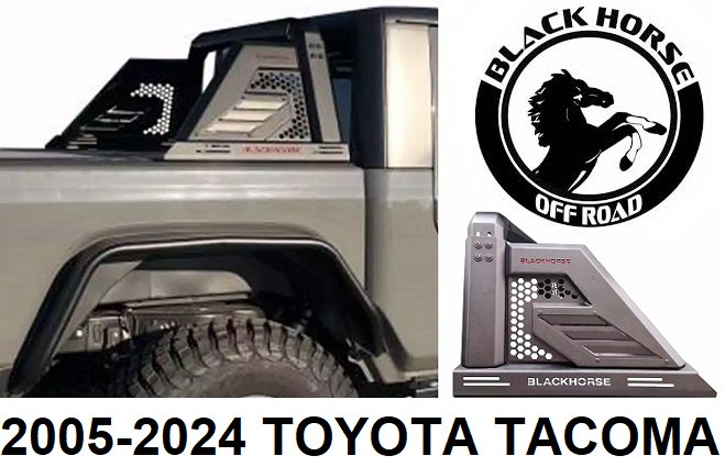 Black Horse Off Road Armour II Roll Barwith LED Light Mount Plate – Compatible with 2005-2024 Toyota Tacoma (Model: AR2-03B)