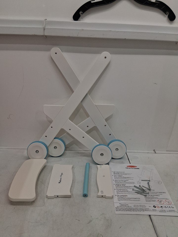 MELISSA AND DOUG MINE TO LOVE WOODEN PLAY STROLLER FOR DOLLS/STUFFED ANIMALS - 10.75" x 15.5 "x 10.3" - white/blue (model: ‎96602)