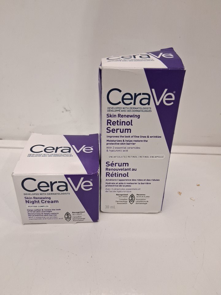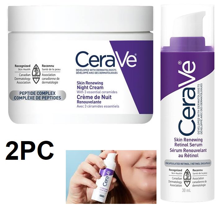 2PC CERAVE SKIN RENEWING NIGHT CREAM & RETINOL SERUM - 30ML & 48G