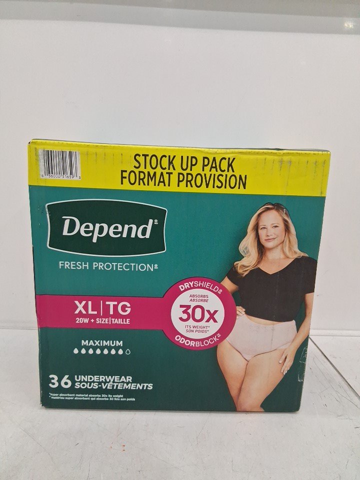 36PK womens DEPEND FRESH PROTECTION UNDERWEAR - EXTRA LARGE - PINK