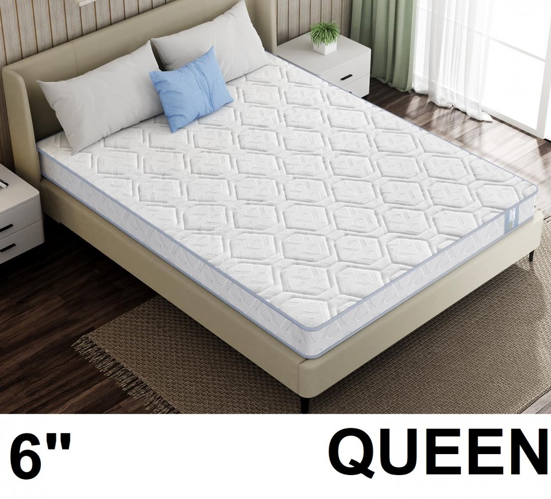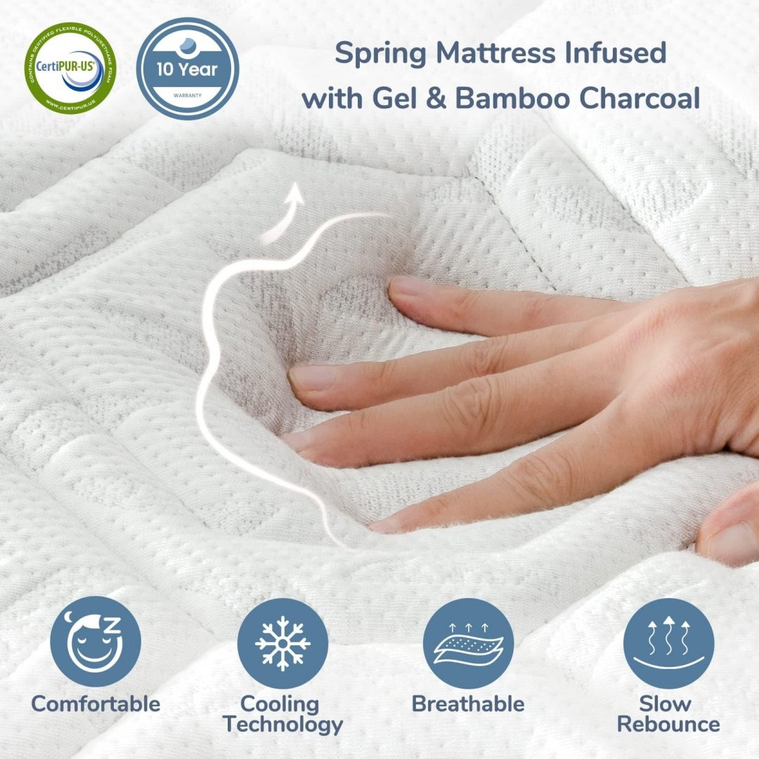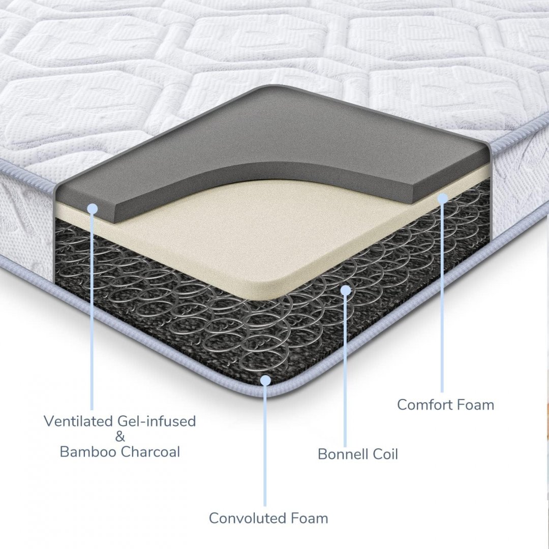 BedStory hybrid gel foam AND BONNEL Spring bamboo charcoal Mattress - 6" QUEEN - white