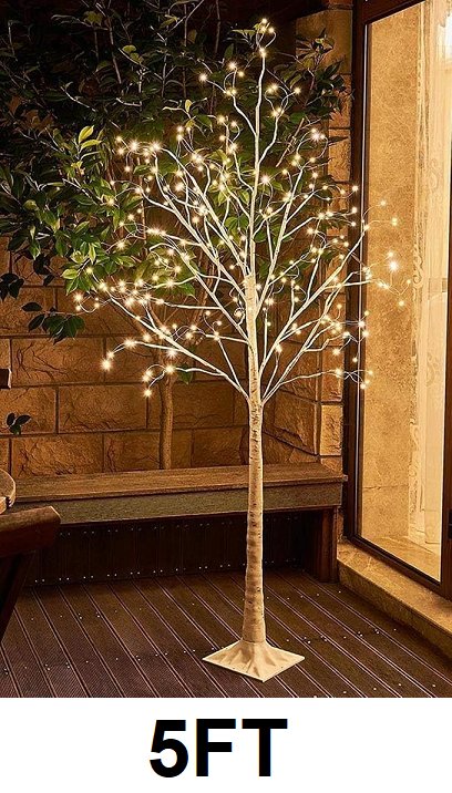 peiduo pre light decorative free standing indoor/outdoor birch tree - with 8 light modes - 5ft - warm white
