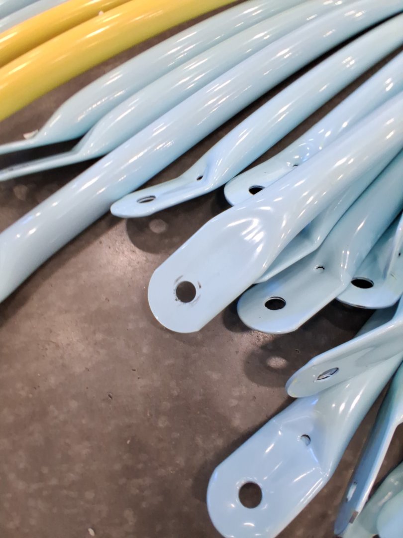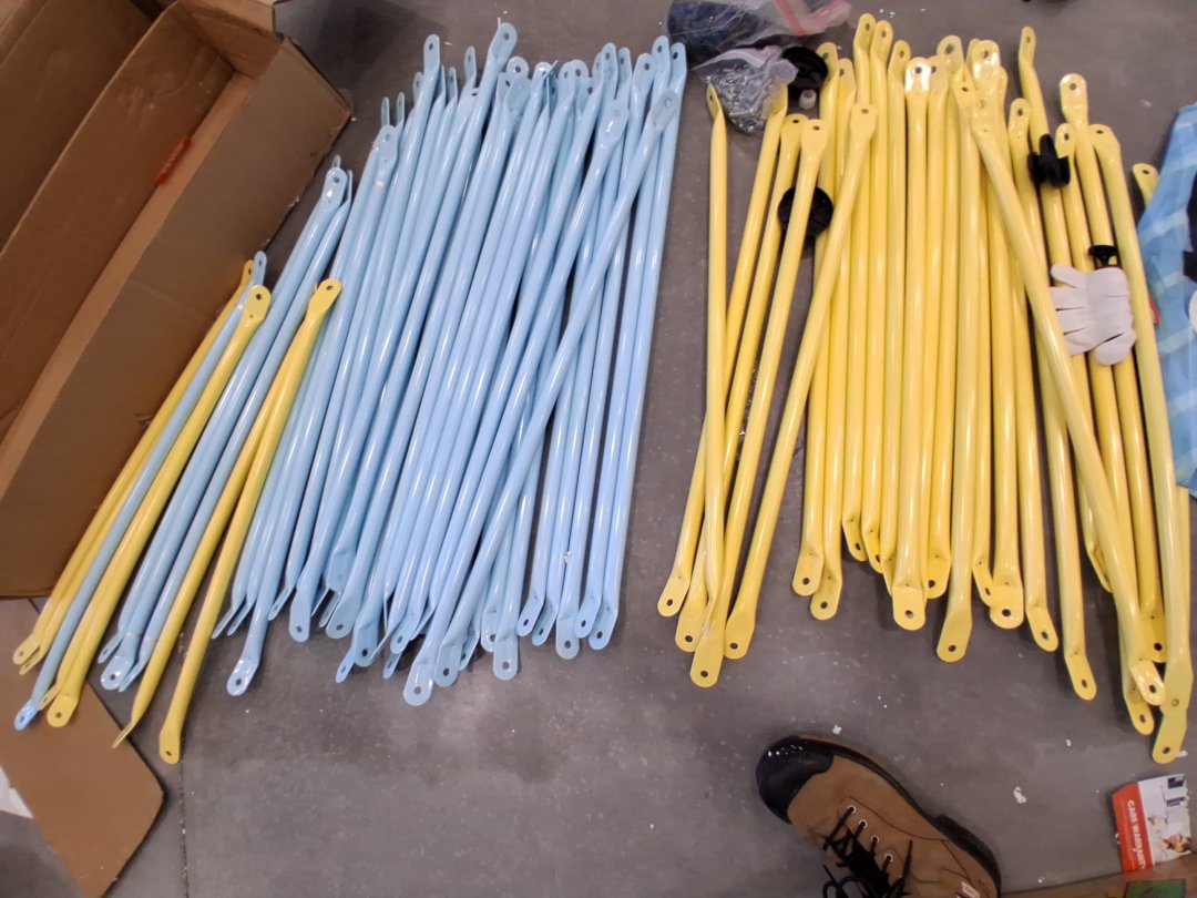 missing hammock and swing. stripped paint on bars show previous assembly. Blue fabric in picture is not part of original set.