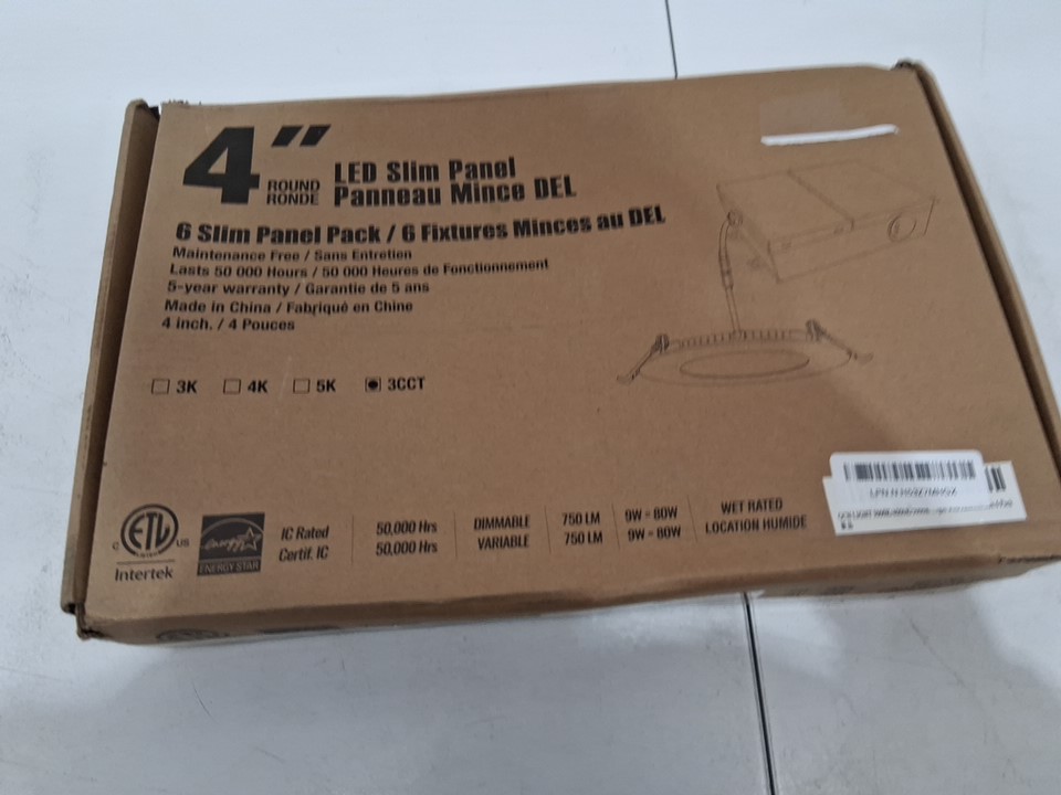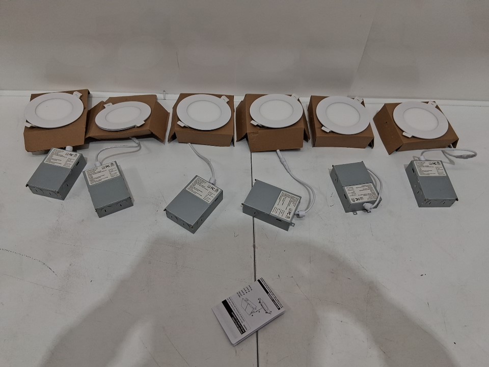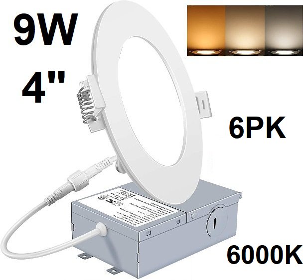 6PK GCNLIGHT 4" 9W LED Slim Downlight Panel , (6000K) 750LM with Junction Box (White, 3CCT)