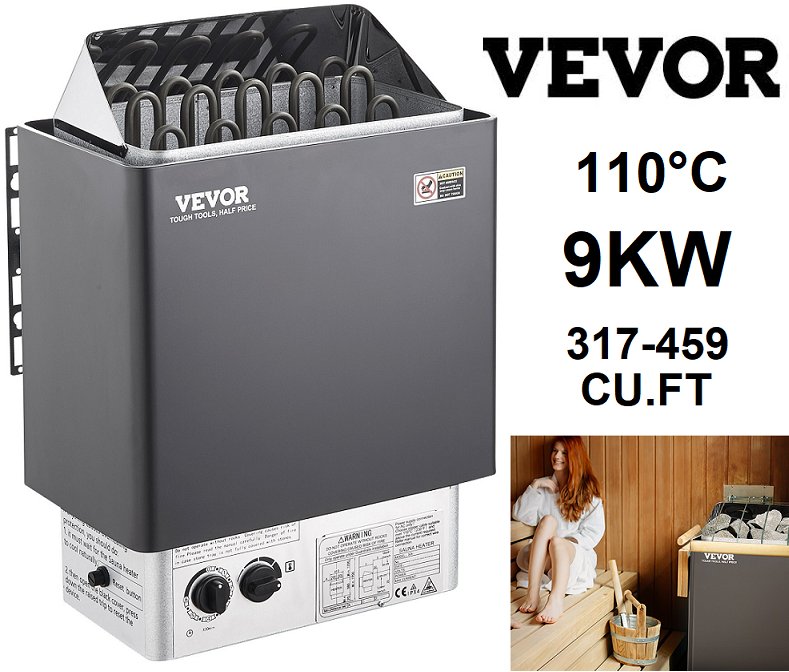 VEVOR Electric Sauna Heater with Built-In Controls 3h Timer and Adjustable Temp - 317-459 Cubic Feet - 9KW - 220V - black/silver (model: sca-90ns)