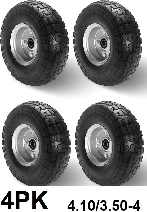 4pk einesin multi-usesolid rubber for garden carts - 4.10/3.50-4 - black