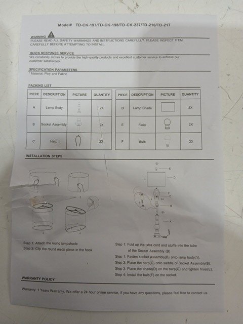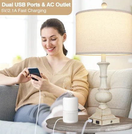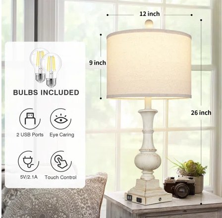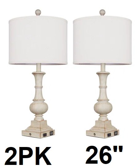 2PK Ophelia & Co. LEVIS Farmhouse Resin Table Lamp Set with Dual USB Ports and Built-in outlet - 26" - OFF WHITE - (MODEL: TD-CK-197)