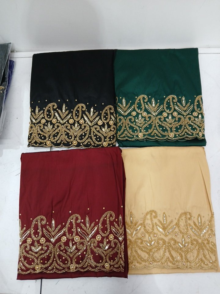 4pc fabric with embellished trim for traditional clothing - 55" x 6ft - multi
