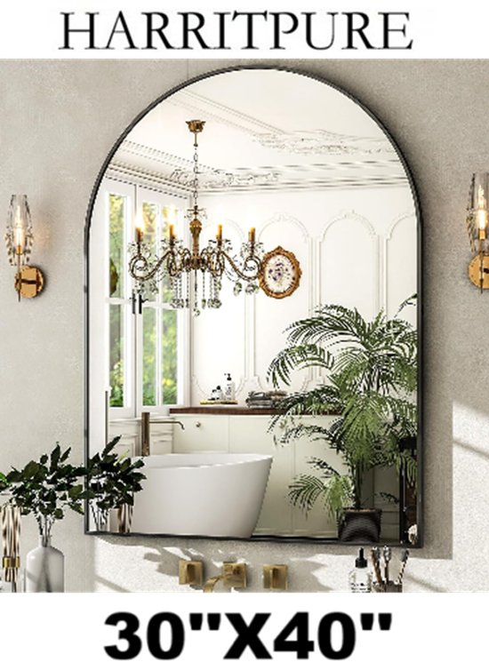 HARRITPURE Arched Aluminum Alloy Frame Wall Mounted Mirror - 30''X40'' - black
