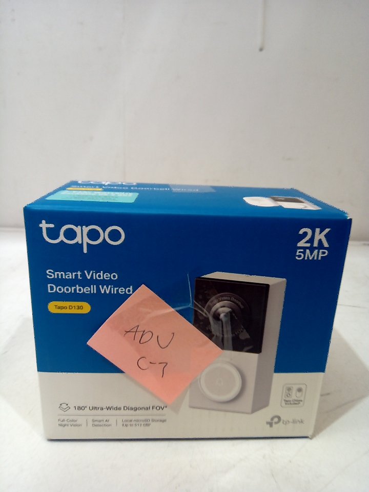 Tapo TP-Link Wired Smart Video Doorbell, 2K 5MP, Colour Night Vision, 180° FOV, 2-Way Audio, Free AI Detection, Cloud & SD Card Storage, Alexa & Google Home Compatible - white/black (model: D130)