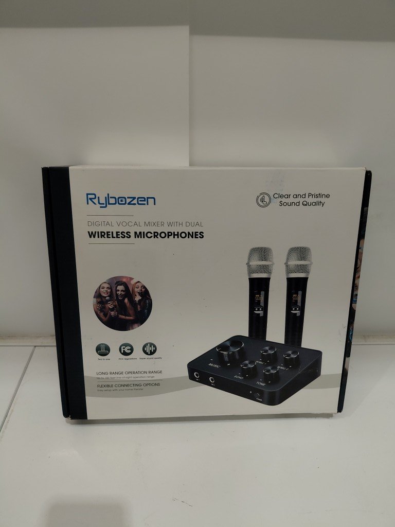 RYBOZEN WIRELESS MICROPHONE KARAOKE MIXER SYSTEM - DUAL HANDHELD WIRELESS MICS FOR SMART TV, KAROOKE, PC, SPEAKER, CHURCH, WEDDING - HDMI/AUX