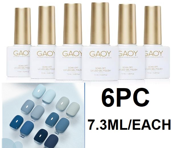 6PC gaoy Soak Off UV Light Cure Gel Polish - 7.3ml each - assorted blues