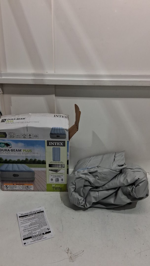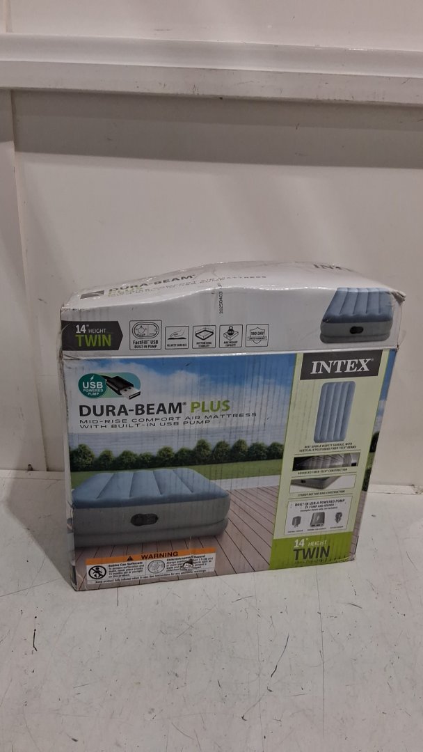 INTEX DURA-BEAM PLUS TWIN AIR MATTRESS WITH BUILT IN USB ELECTRIC PUMP And Carrying Bag - 14" Twin - GREY/BLUE (MODEL: 64157E)