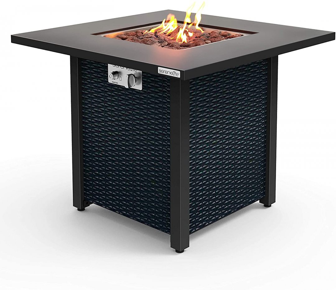 SERENELIFE PROPANE FIRE PIT TABLE, OUTDOOR RATTAN STYLE TABLE W/ PULSE IGNITION PROPANE GAS FIRE TABLE TOP, 40,000BTU (GREY/DARK BROWN) (MODEL: SLFPS3)
