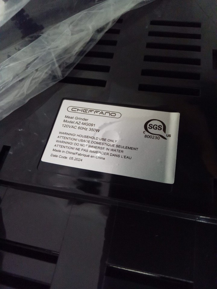 CHEFFANO HEAVY-DUTY MEAT/FOOD GRINDER WITH SAUSAUGE STUFFER - SILVER (MODEL: AZ-MG091)
