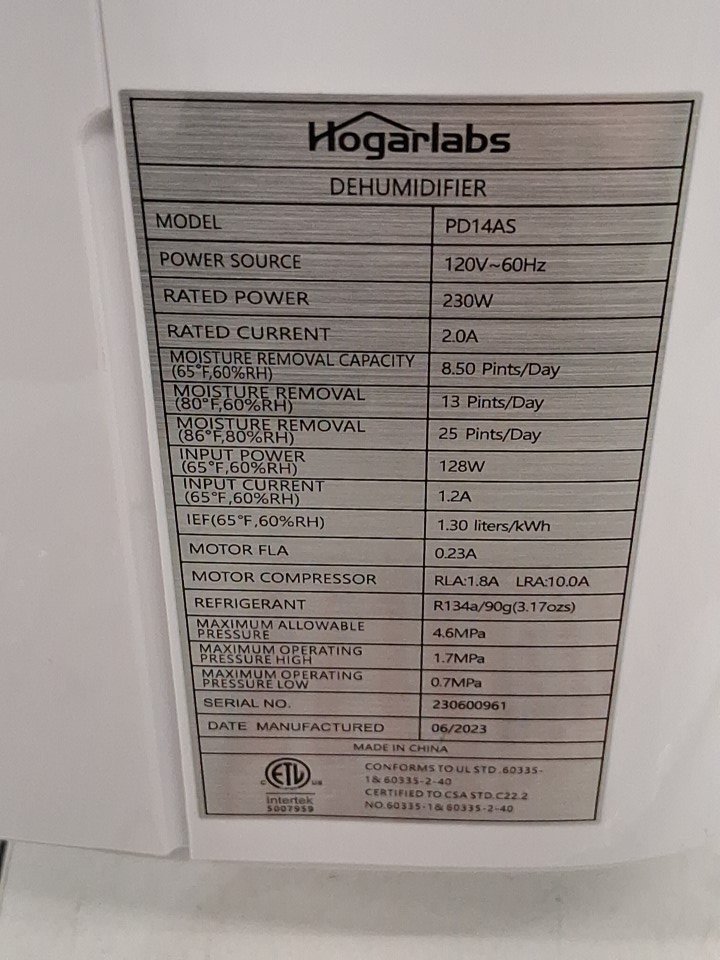 HOGARLABS Home Dehumidifier with Digital Control Panel & Drain Hose - 25PT, 2000SQ.FT. - WHITE (MODEL: PD14AS-12)