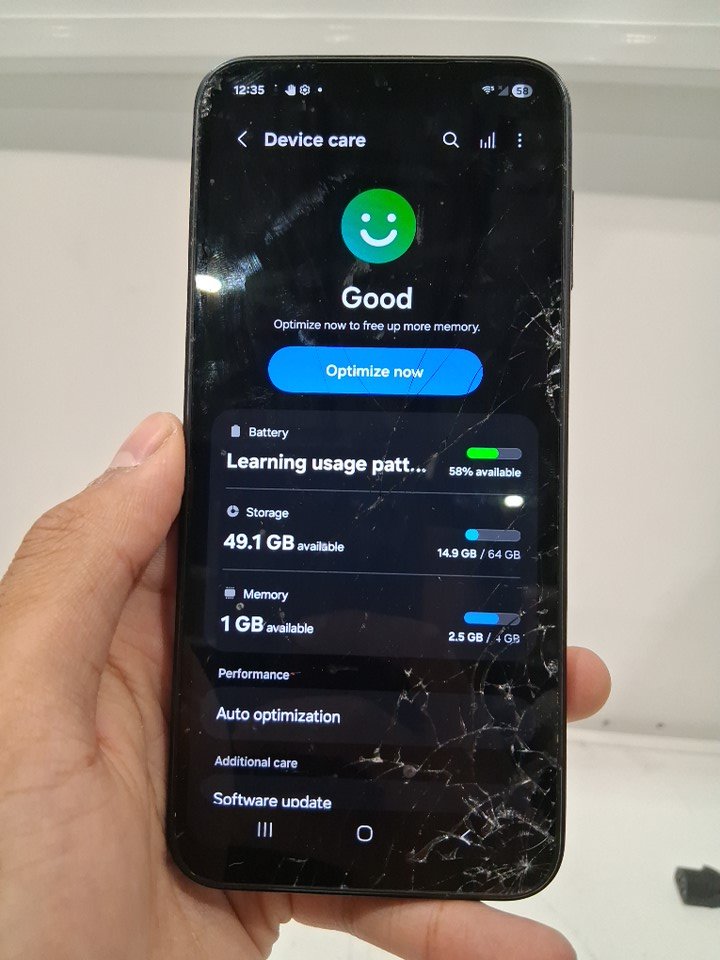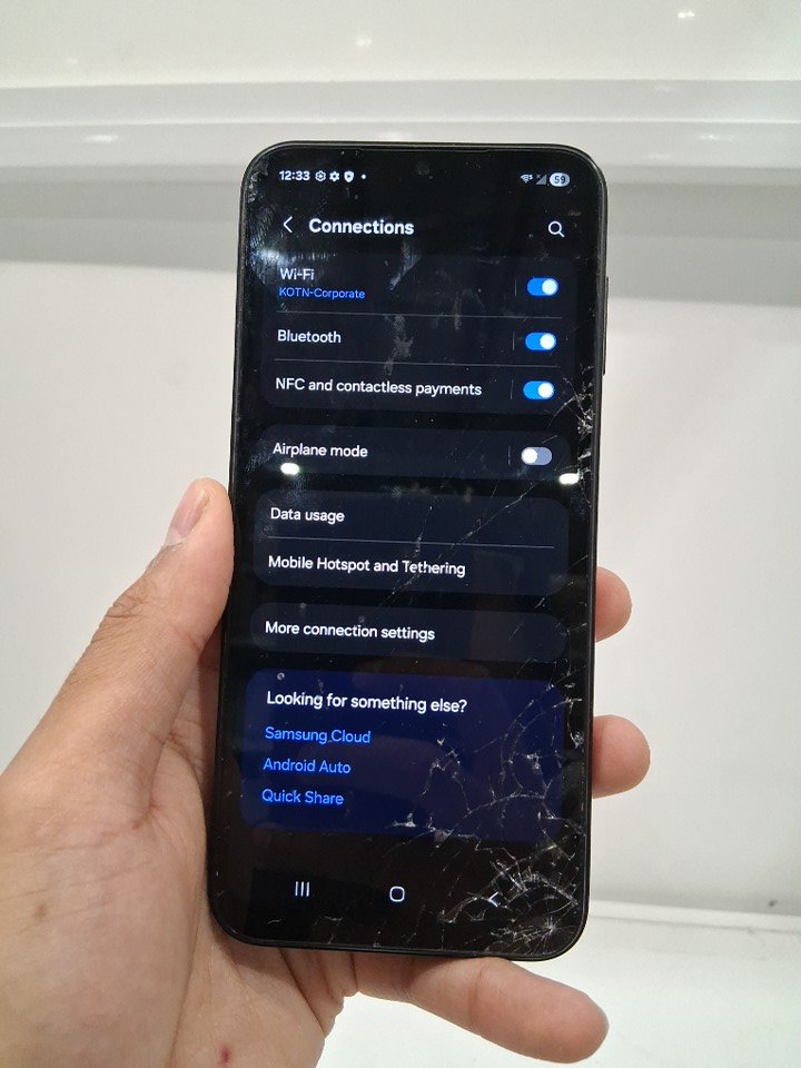 + Item has a cracked screen but still functions + + Item has scuffs and scratches around it +