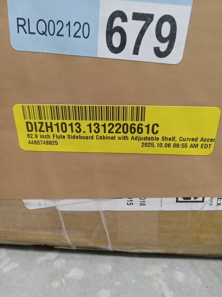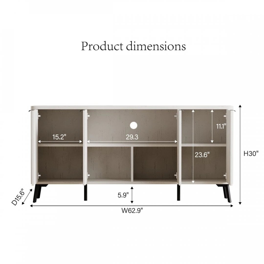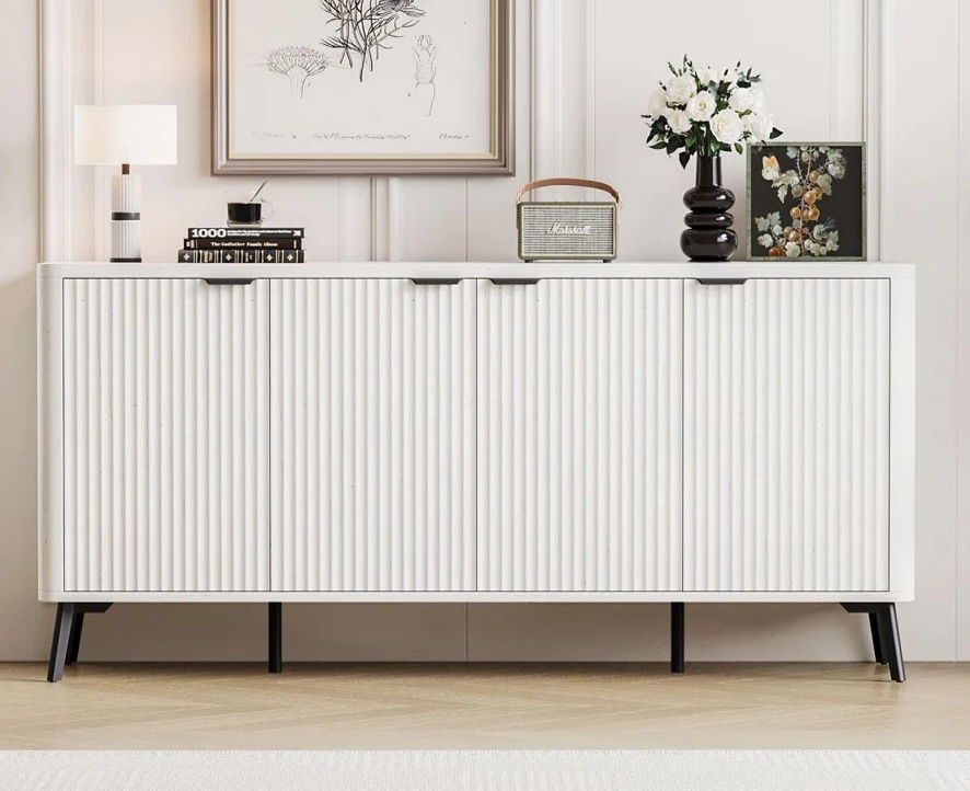 Flute Sideboard Cabinet with Adjustable Shelf, Curved Accent Cabinet with Metal Legs