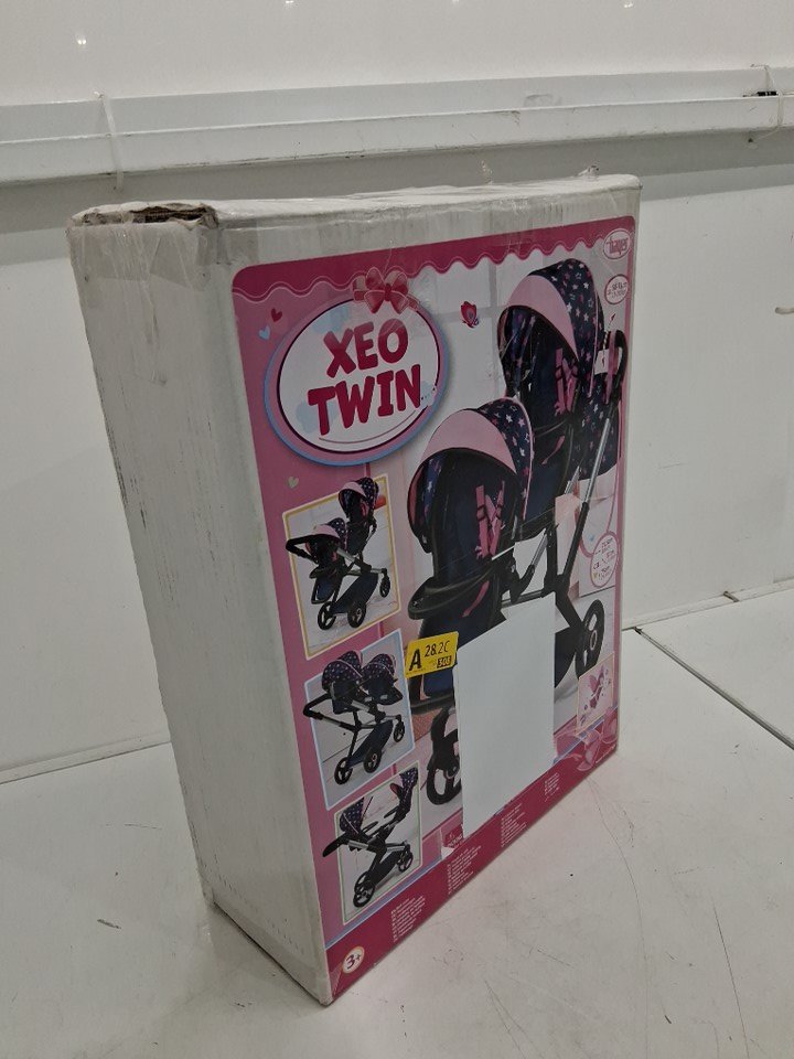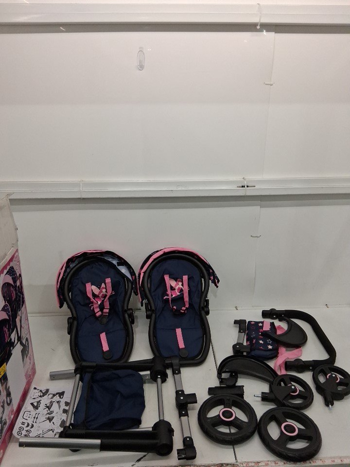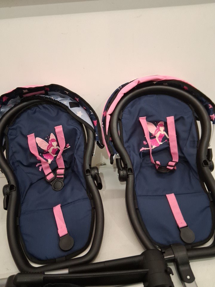 Bayer Design - twin Dolls Pram Xeo - ADJUSTABLE HANDLE Baby Stroller for Dolls with childrens side Bag - navy/pink - (MODEL: 26716aa)