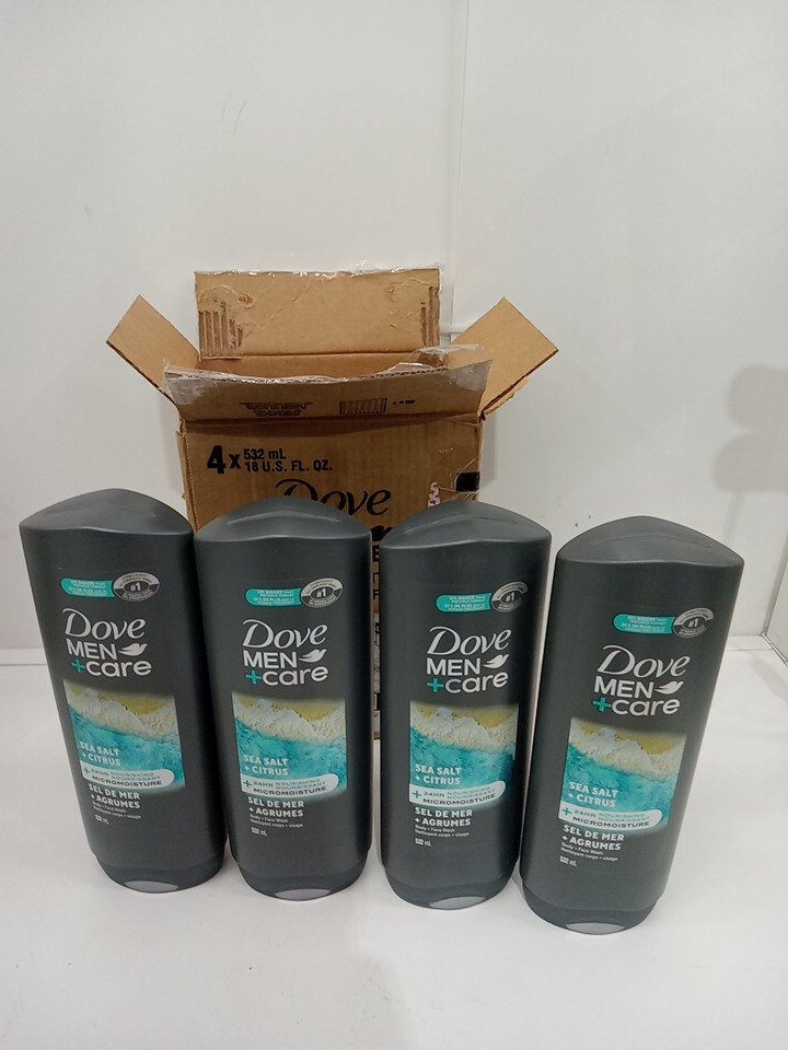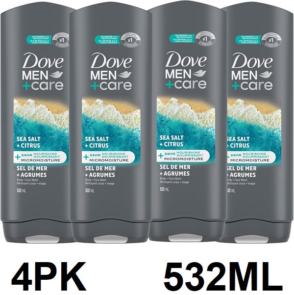 4PK DOVE MEM + CARE BODY AND FACE WASH - SEA SALT AND CITRUS - 532ML/EACH