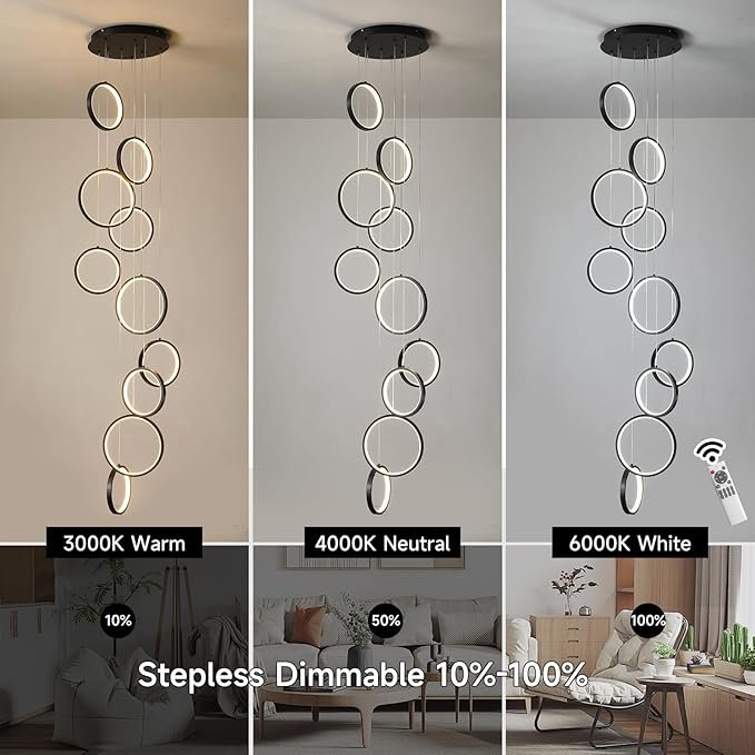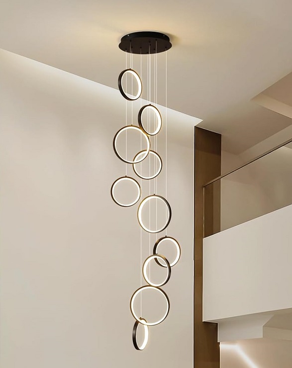 Siittoo 10-light Modern High Ceiling Chandelier, with rings, 134" - black (model: ‎2397)